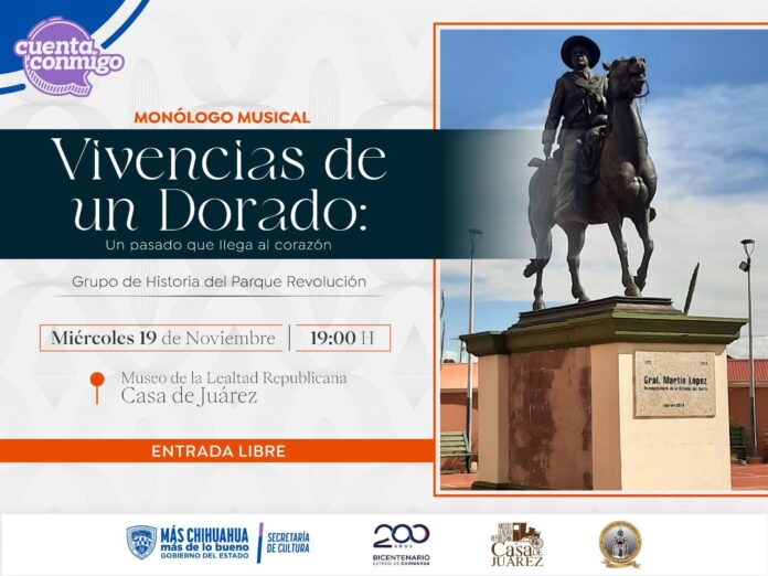 La Secretaría de Cultura, a través del Museo de la Lealtad Republicana Casa de Juárez, invita a la comunidad chihuahuense a disfrutar del monólogo musical “Vivencias de un Dorado: Un pasado que llega al corazón”, que se presentará en las instalaciones del museo, en la ciudad de Chihuahua.