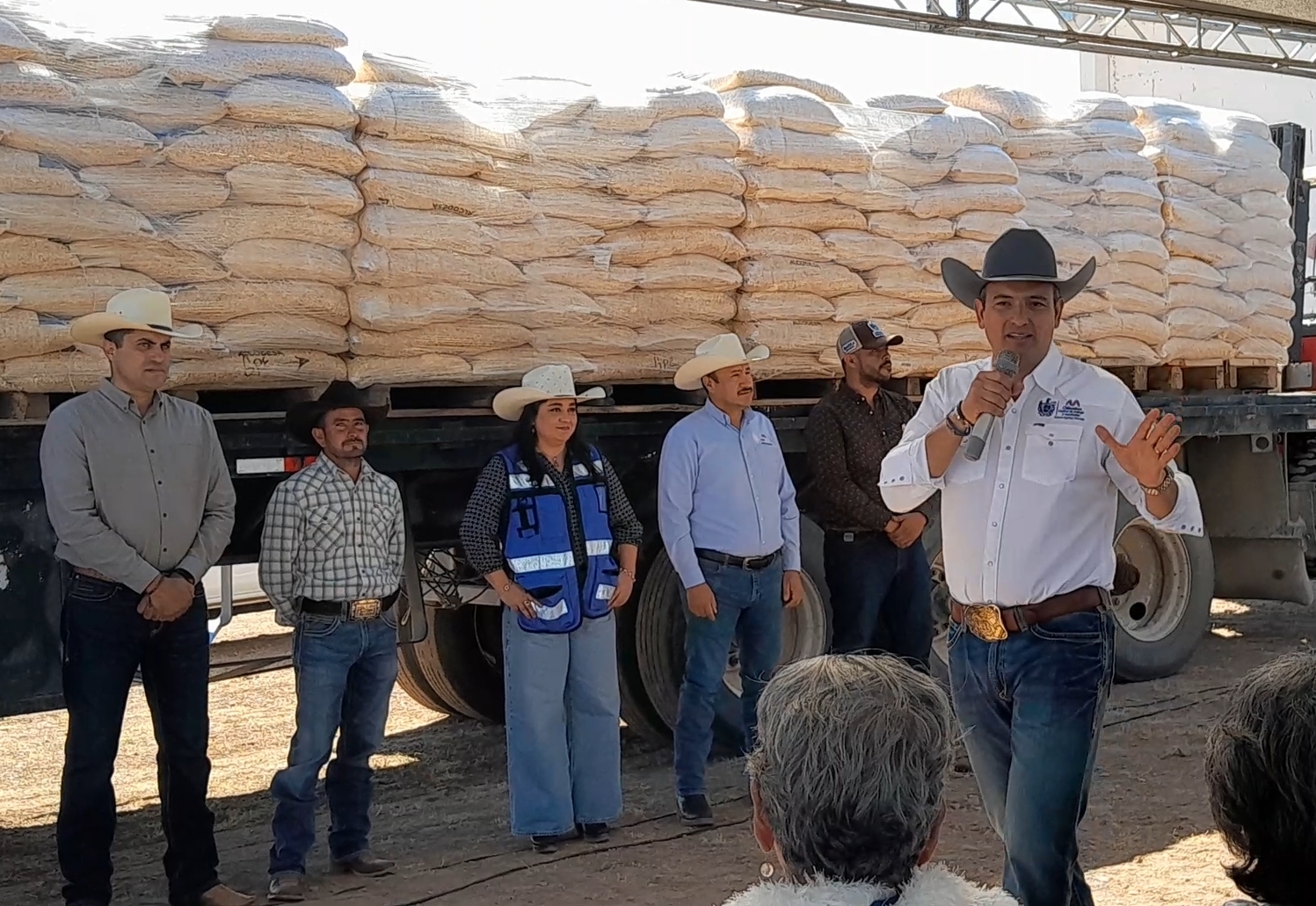 Acompañado por el presidente seccional Jesús Sigala Rodríguez, el edil realizó la entrega de 241 toneladas de maíz rolado, equivalentes a 3 mil sacos, con una inversión superior al millón de pesos. Ambos destacaron que este tipo de acciones forman parte de una política pública orientada a fortalecer a los productores pecuarios en las comunidades rurales del municipio.