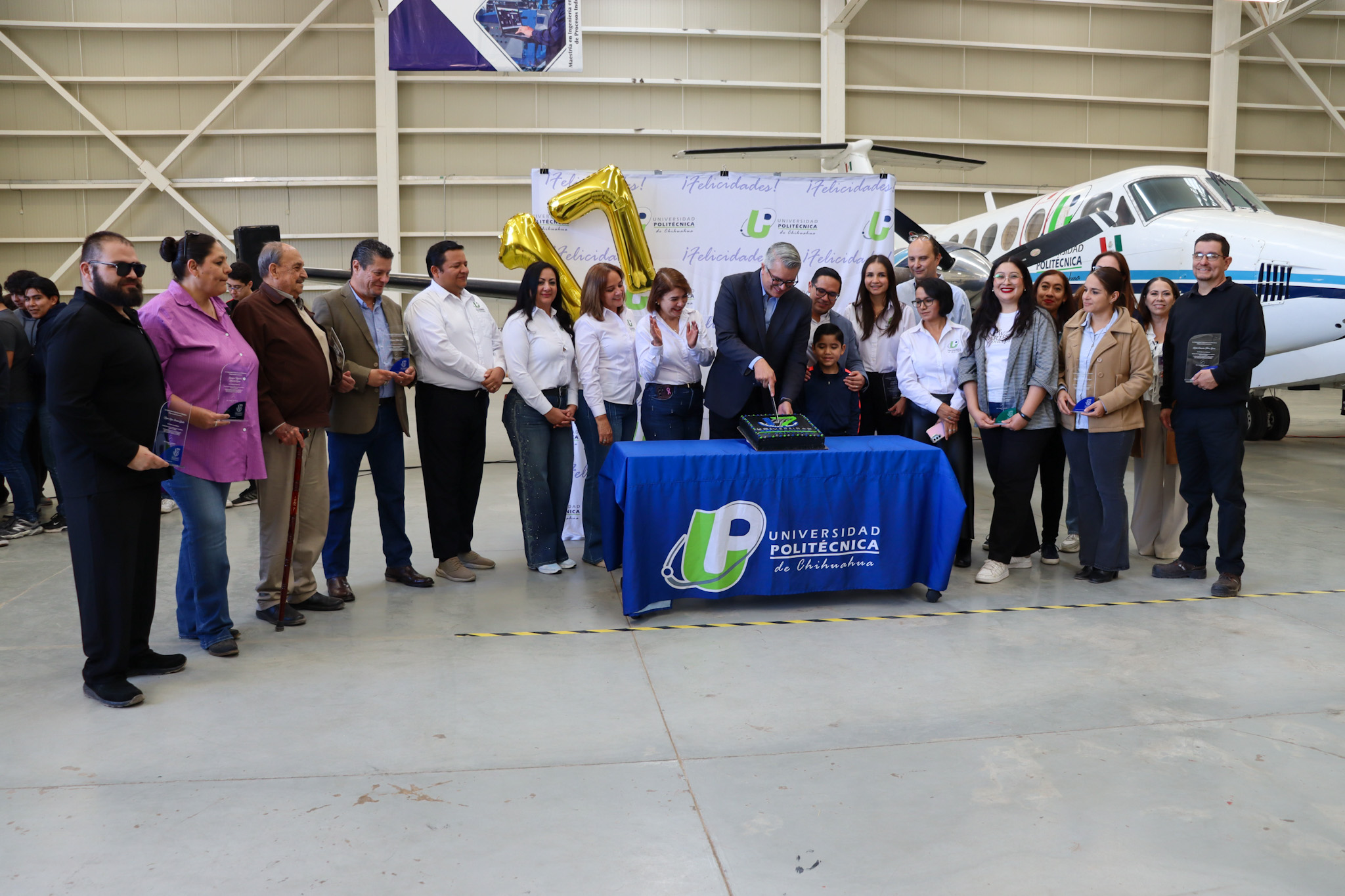 La Universidad Politécnica de Chihuahua (UPCH) celebró su 17 aniversario con un concierto especial de la Orquesta Filarmónica del Estado de Chihuahua, en el hangar de la institución, además de la entrega de reconocimientos al personal por sus años de servicio.