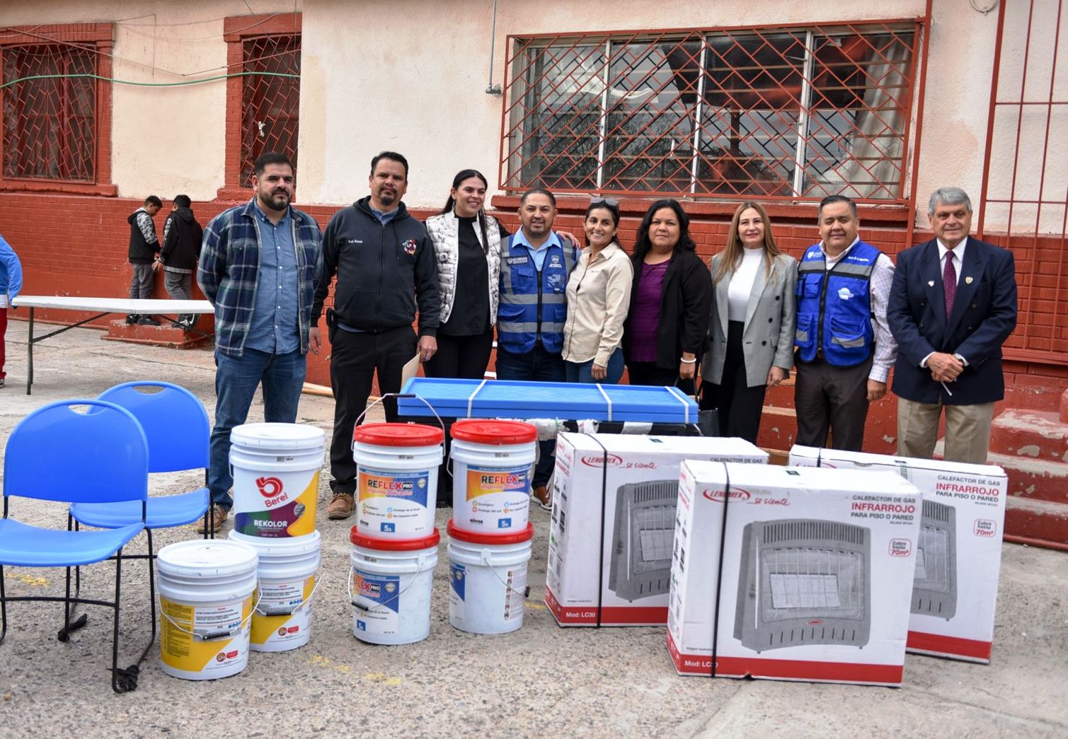 La entrega incluye materiales que mejoran la calidad de estancia de estudiantes y docentes, como aires evaporativos, calentones, mesas de trabajo, butacas, pizarrones, impermeabilizante y pintura.