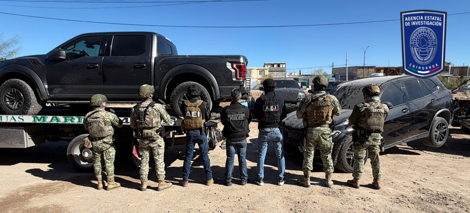 La Fiscalía de Distrito Zona Norte, a través de la Agencia Estatal de Investigación, recuperó dos vehículos que contaban con reporte de robo durante una orden de cateo cumplimentada en un domicilio de la calle Agave de la colonia El Mezquital, en Ciudad Juárez.