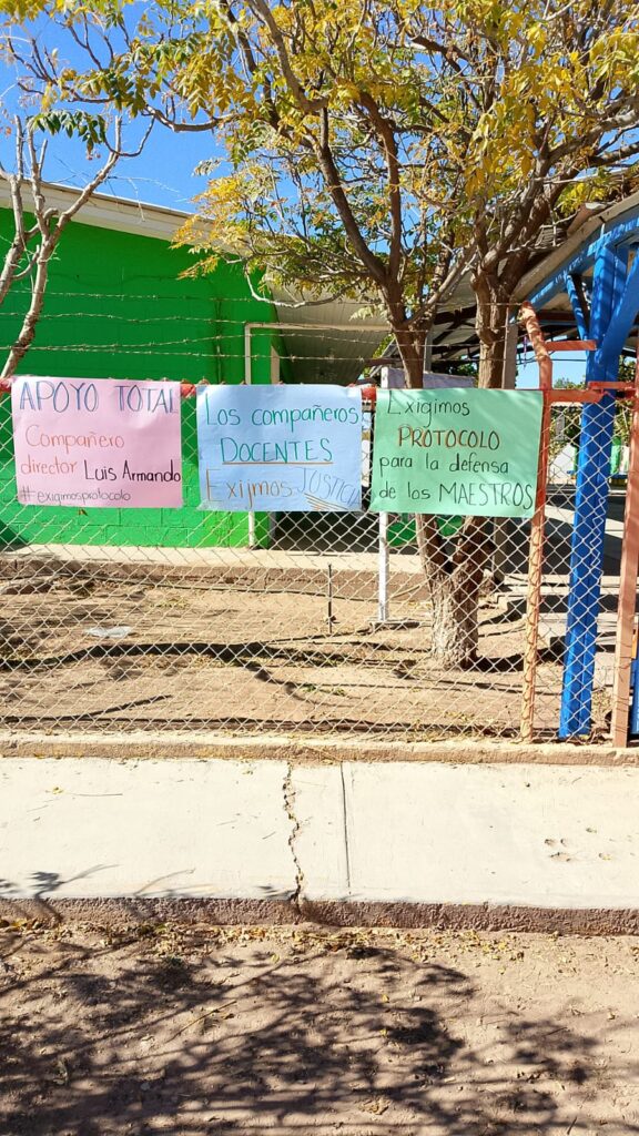 Después de que ayer padres de familia decidieran cerrar la escuela Primaria María Martínez de Escutia de Casas Grandes en apoyo al director de la institución, Luis Armando R. H., tras su detención y exigiendo esclarecer antes las acusaciones en su contra por presunto abuso sexual contra un niño de 6 años, hoy se sumaron a la protesta y apoyo al maestro otras escuelas de la Delegación D-I-24 de la Región Paquimé bajo la demanda común de #exigimosprotocolo.