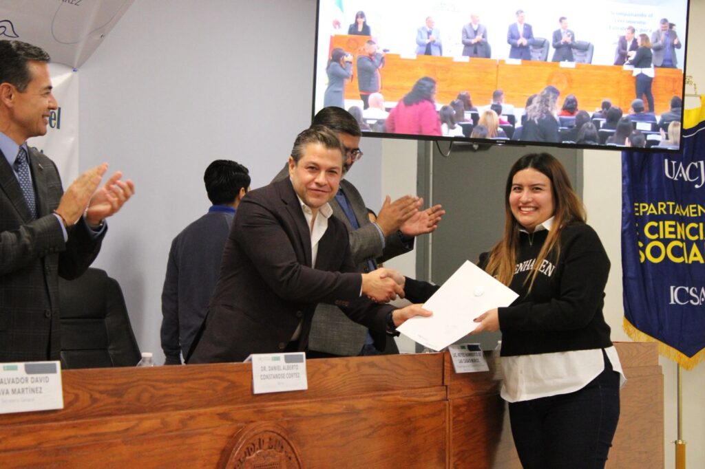También estuvieron presentes Óscar Armando Esparza, coordinador del Programa de Psicología; Servando Pineda, jefe del Departamento de Ciencias Sociales de la UACJ; Jesús Meza Vega, director del ICSA y Salvador David Nava Martínez, secretario general de la UACJ.