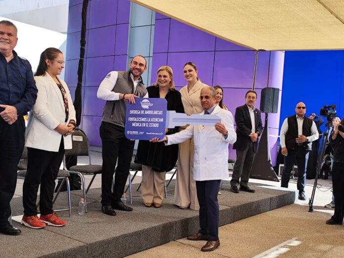 La gobernadora Maru Campos Galván encabezó este miércoles al mediodía, en el Hospital Infantil de Especialidades, la entrega de 8 ambulancias y dos unidades 4×4 adaptadas para funciones de emergencia, con el objetivo de fortalecer la atención médica de más de un millón de habitantes en nueve municipios. La dotación, con una inversión de 17 millones 897 mil 783 pesos, beneficiará a Nuevo Casas Grandes, Villa Ahumada, Camargo, Creel, Ojinaga, Cuauhtémoc, Chihuahua, Guachochi y Témoris. Campos Galván destacó que, antes de esta administración, hacía casi una década que no se renovaban ambulancias.