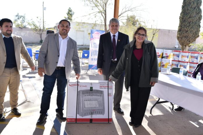 En esta ocasión se tuvo como sede la Escuela Aurelia Calderón de Escobar, donde se entregó pintura blanca, impermeabilizante, sillas de paleta y binarias, sillas para maestros, mesas, pizarrones, calentones y aires evaporativos, apoyos para más de 3 mil estudiantes de ambos turnos.