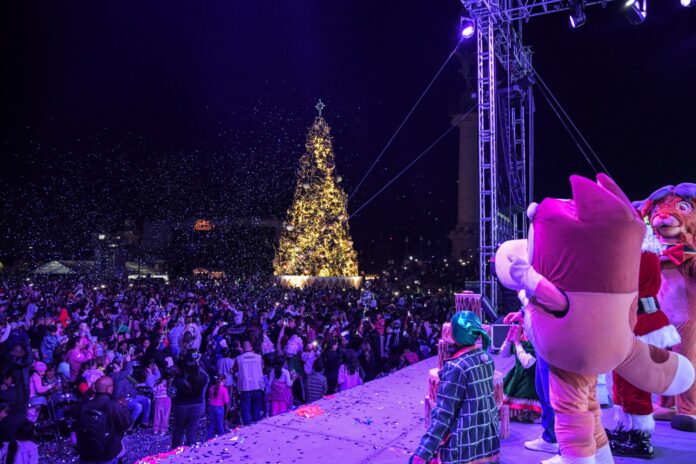 El Gobierno del Estado llevó a cabo el tradicional encendido del Árbol Navideño en la Plaza del Ángel, que marca el inicio de la temporada decembrina.