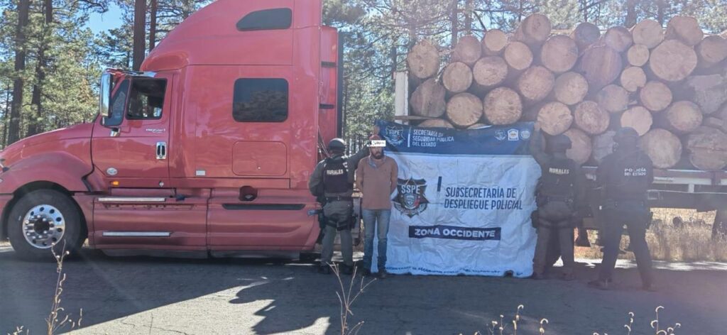 La Secretaría de Seguridad Pública del Estado (SSPE), en colaboración interinstitucional con la Guardia Nacional y la Secretaría de la Defensa Nacional, llevó a cabo el aseguramiento de un tractocamión que transportaba 158 trozos de madera en rollo, los cuales no contaban con la documentación requerida para acreditar su legal procedencia.