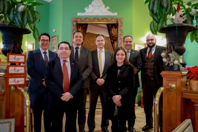 Washington, D.C., a 2 de diciembre de 2025.– Como parte del segundo día de actividades en la capital estadounidense, el Alcalde Marco Bonilla sostuvo una reunión con el Embajador de México en Estados Unidos, Esteban Moctezuma, para abordar temas de alto impacto para Chihuahua dentro de la relación bilateral entre ambos países.