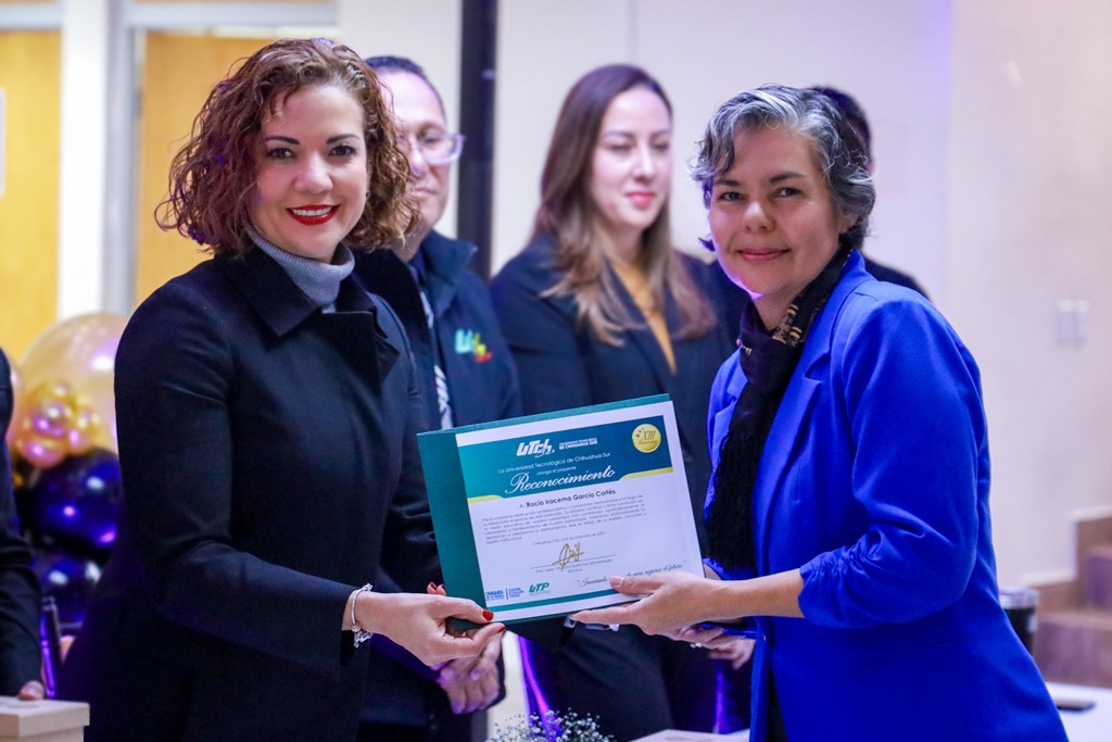 Durante el evento, se entregaron distintivos al personal con 5 y 10 años de servicio, a quienes se reconoció el compromiso demostrado en la formación de cientos de jóvenes chihuahuenses.