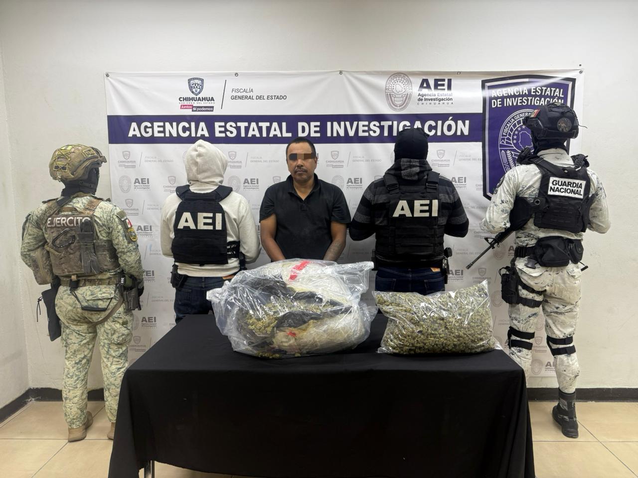 En un operativo coordinado, autoridades detuvieron a un hombre que transportaba casi nueve kilos de marihuana en la colonia Parajes de San Isidro.