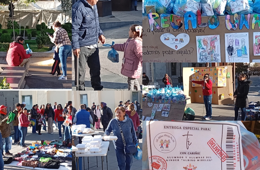 Por segundo año, la comunidad del Jardín de Niños Albino Mireles, con el respaldo del USAER 7503 y la participación activa de niñas, niños, madres, padres, docentes y personal de apoyo, llevó a cabo este viernes el cierre de su proyecto solidario y realizó la entrega de cerca de 170 despensas, además de ropa, juguetes y desayunos a personas en situación de calle en la Plaza de Armas e inmediaciones.