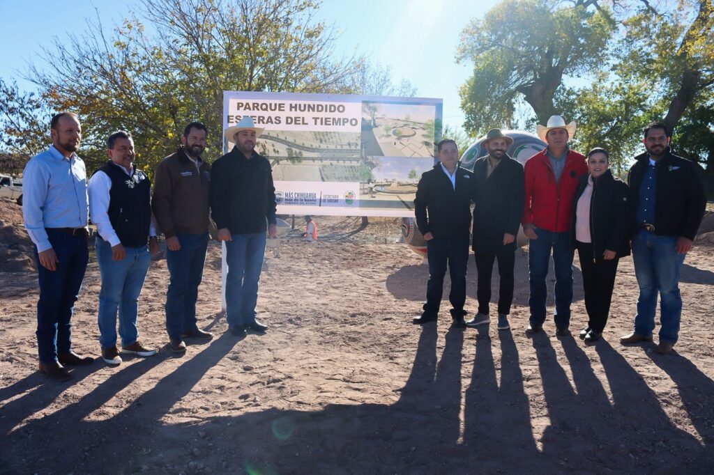 Además iniciaron los trabajos de construcción de la Plaza Esferas del Tiempo de Casas Grandes, proyecto que contempla andadores, áreas verdes, explanadas, escenario central y un espejo de agua.