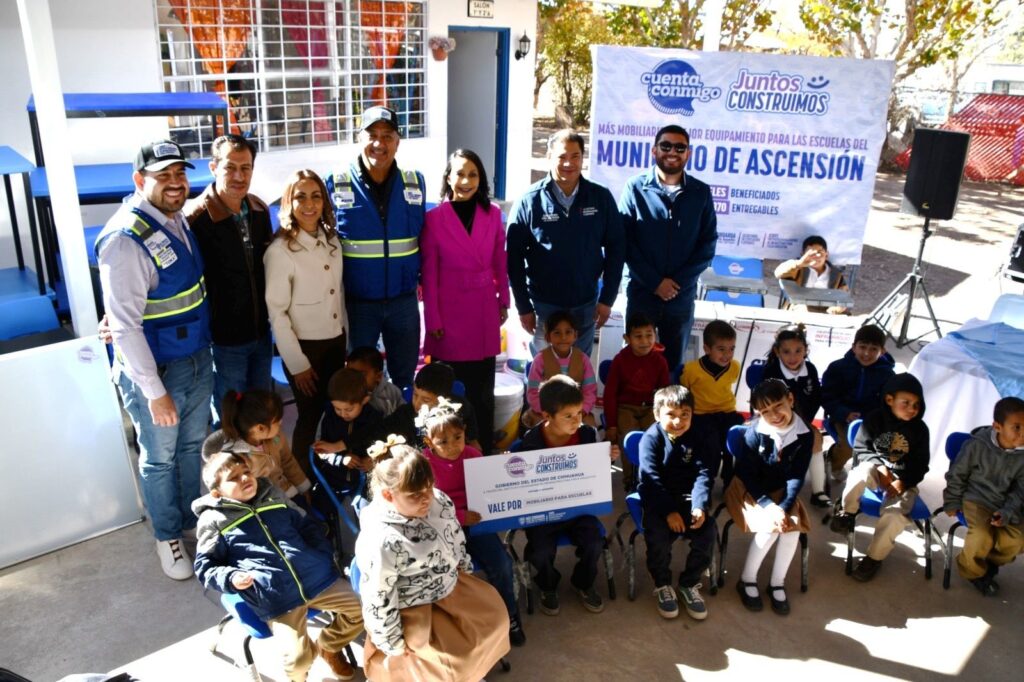 Las autoridades, acompañadas del director general del Instituto Chihuahuense de Infraestructura Física Educativa (Ichife), Luis Iván Ortega Ornelas, entregaron mobiliario a cinco centros educativos, como parte del programa estatal “Juntos Construimos”.