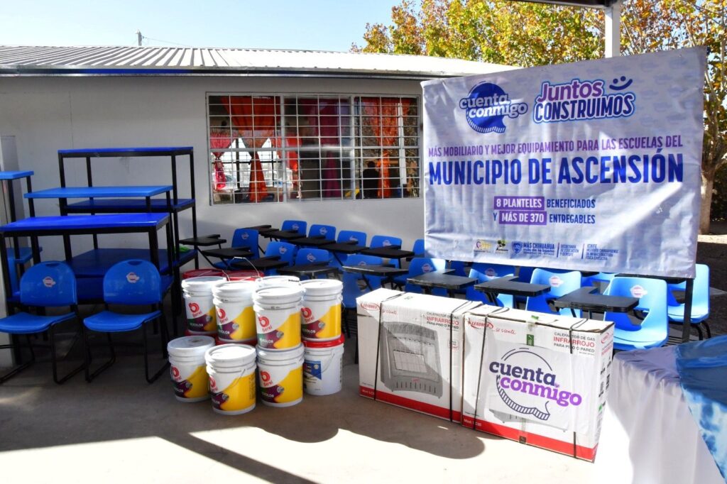 La Secretaría de Educación y Deporte (SEyD) en coordinación con el Ayuntamiento de Ascensión inauguró la instalación de una techumbre, y entregó mobiliario diverso a planteles de Educación Básica de esta población.