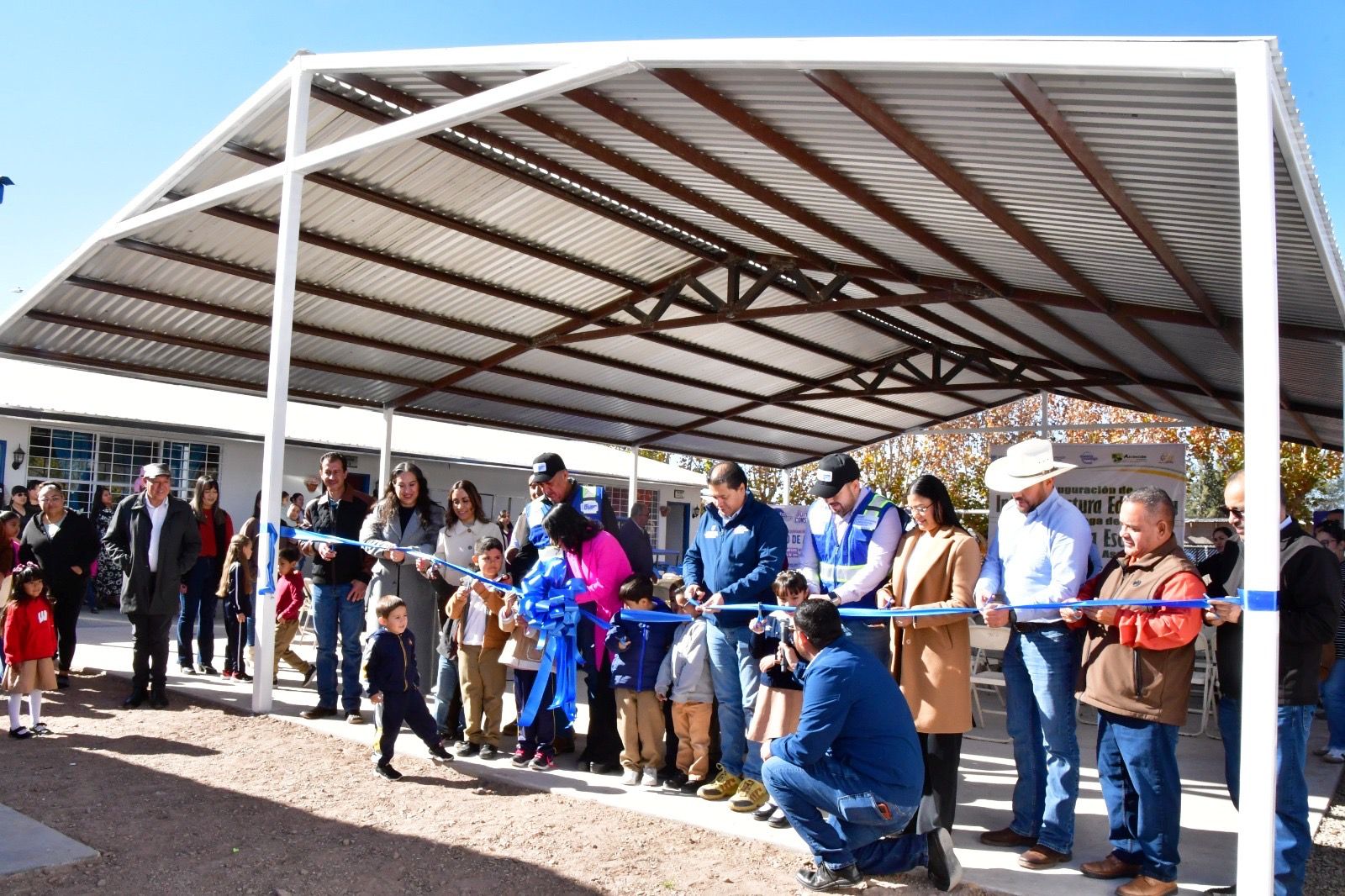 La Secretaría de Educación y Deporte (SEyD) en coordinación con el Ayuntamiento de Ascensión inauguró la instalación de una techumbre, y entregó mobiliario diverso a planteles de Educación Básica de esta población.