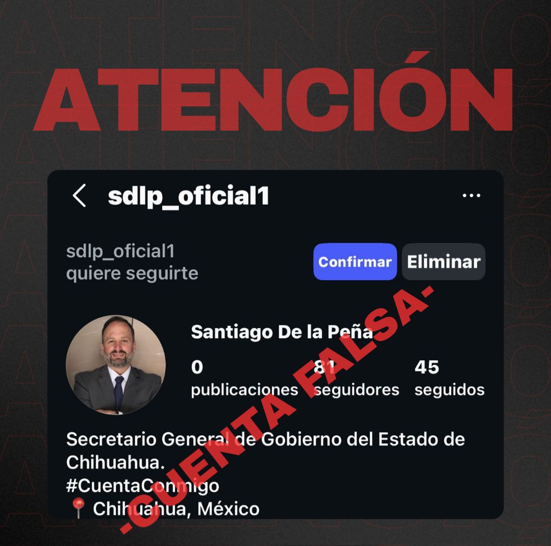 El Secretario General de Gobierno, Santiago de la Peña informa que durante la mañana de hoy comenzó a circular cuenta de la red social de Instagram con su nombre y fotografía; misma que es una cuenta falsa y no oficial.