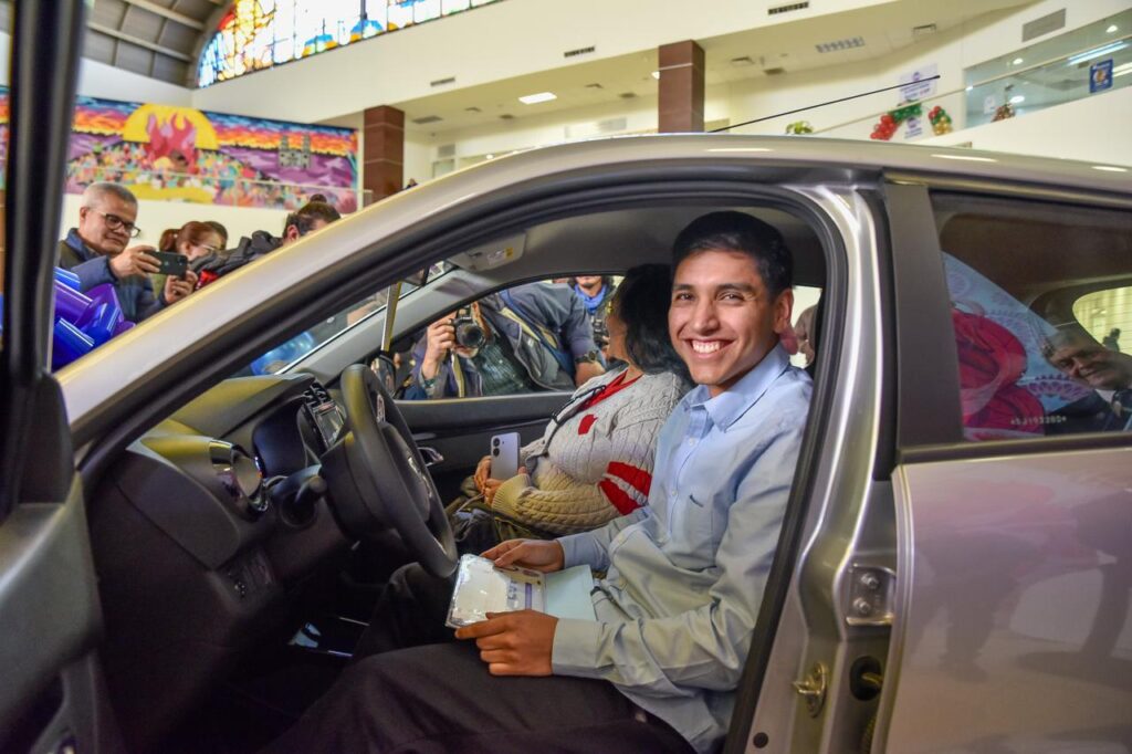 “Gracias por creer en la educación como motor de transformación y por impulsar estímulos que reconocen el esfuerzo, la disciplina y la excelencia académica, de manera muy especial agradezco este vehículo que hoy recibo y que tuve la oportunidad de ganar gracias a mis calificaciones”, expresó Uziel Godínez Rubio.