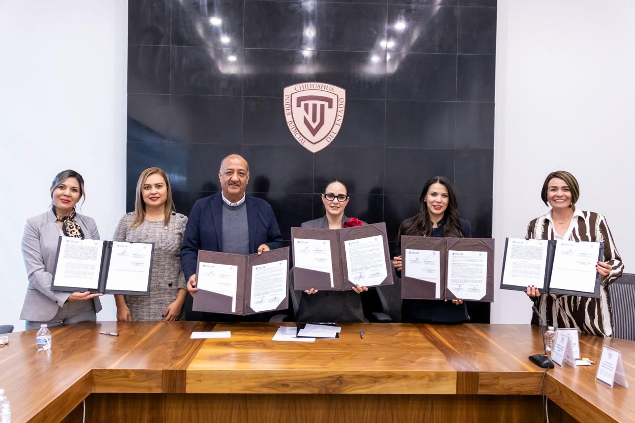 La firma del convenio se llevó a cabo en la sede del Poder Judicial del Estado, con la participación de autoridades del ámbito judicial y educativo.