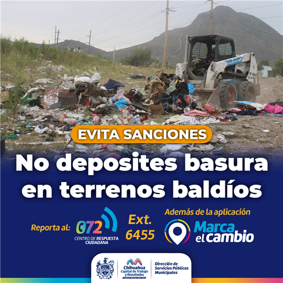 Con el objetivo de mantener una buena imagen urbana, el Gobierno Municipal a través de la Dirección de Servicios Públicos Municipales, hace un exhorto a la población en general a evitar tirar basura o escombro en viviendas abandonadas y terrenos baldíos de la ciudad.