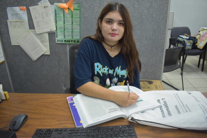 “El tiempo va corriendo”, manifestó la joven de 16 años, al recordar su motivación para inscribirse en el Plantel 6 del Colegio de Bachilleres del Estado de Chihuahua (Cobach), tras tres años de no asistir a una escuela formal.
