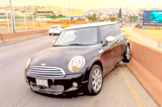 Un Mini Cooper negro perdió el control y chocó contra un muro de contención en la gaza de Cantera, arriba del puente, terminando en sentido contrario tras derrapar y dar varios trompos sobre la calle. No se reportaron lesionados.