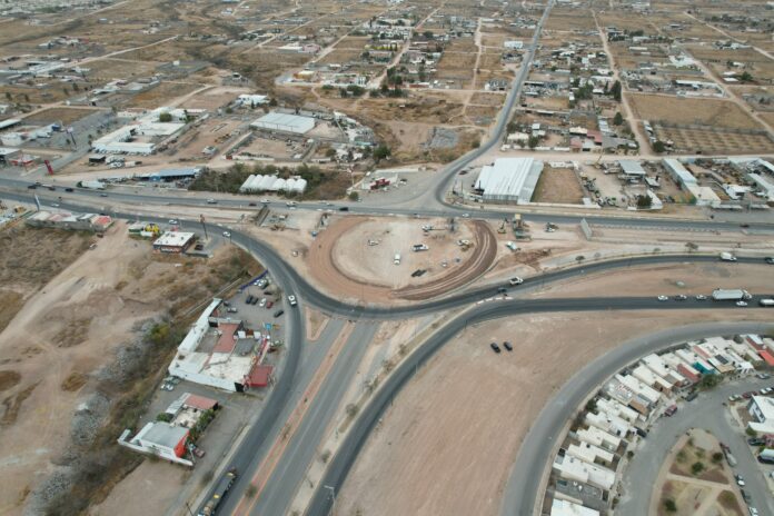 H. Ciudad de Chihuahua, Chih., a 2 de enero de 2026.-El Gobierno Municipal a través de la Dirección de Obras Pública inicia el año 2026 con el desarrollo continuo en la construcción del Paso Superior que estará ubicado en la carretera Chihuahua-Aldama y la avenida Fuerza Aérea, el cual ya acumula un avance del 9%.