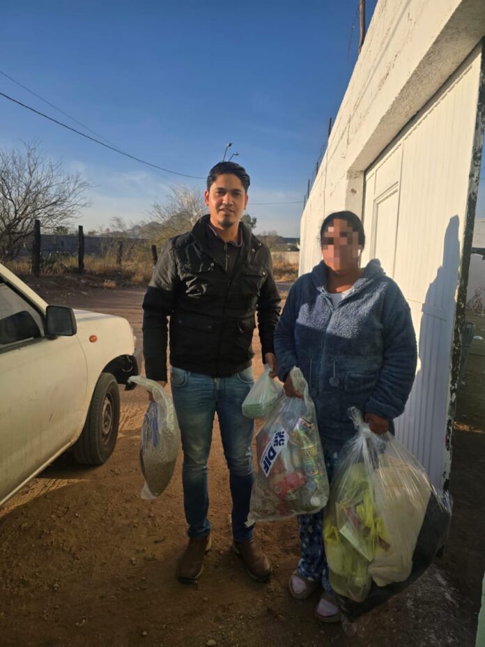 Durante la actividad se distribuyeron despensas con productos de la canasta básica, cobijas y artículos de temporada para enfrentar las bajas temperaturas, así como insumos alimentarios destinados a la cena de fin de año.