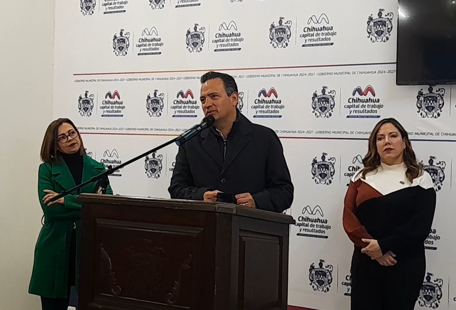 El alcalde de Chihuahua, Marco Bonilla, acompañado por la coordinadora de Participación Ciudadana, Laura Patricia Contreras, y la regidora Isela Martínez, dio a conocer los 101 proyectos que resultaron ganadores dentro del Presupuesto Participativo 2026, los cuales serán ejecutados con una inversión total de 33 millones de pesos.