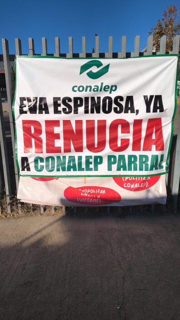 En el pasado mes de diciembre una parte del colectivo de maestros de Conalep Parral le solicito públicamente a la directora del plantel su renuncia aludiendo a una presunta «falta de liderazgo e incapacidad para resolver los problemas de la institución educativa». Los docentes inconformes colocaron mantas a las afueras de la escuela e hicieron un llamado a las autoridades educativas las cuales no han dado respuesta a las peticiones.
