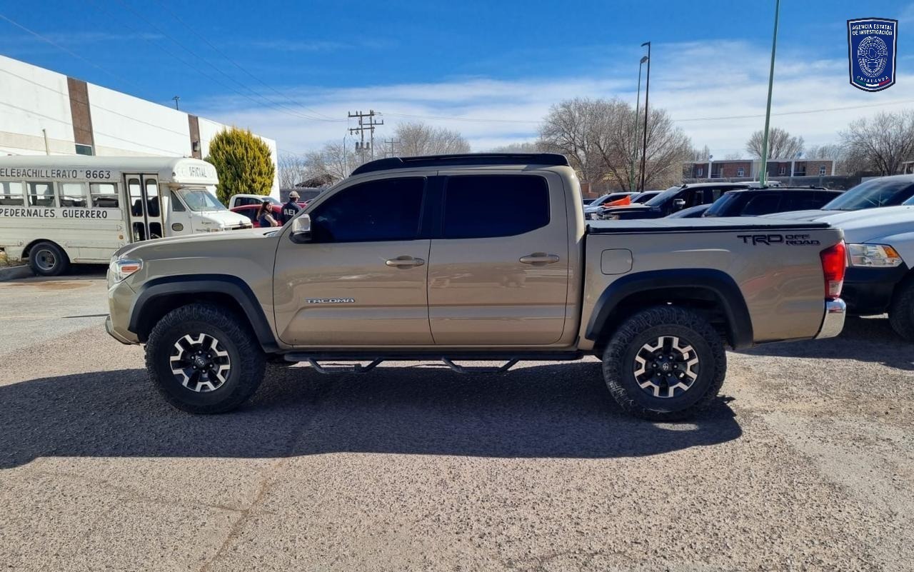 En otros hechos, en las instalaciones de Fiscalía los agentes ministeriales procedieron a revisar un vehículo Toyota, Tacoma, modelo 2019, color beige, el cual fue presentado para su inspección de manera voluntaria.Se pudo conocer que el vehículo contaba con reporte de robo vigente en San Diego, California con fecha 25 de mayo del 2021 por lo que se procedió a su aseguramiento sin que a su poseedor se le iniciara procedimiento.