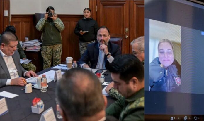 La gobernadora Maru Campos participó vía Zoom en la sesión semanal de la Mesa Estatal de Construcción de Paz, realizada en Palacio de Gobierno, donde en conjunto con autoridades de los diferentes niveles dio seguimiento a las estrategias que se implementan en el estado.
