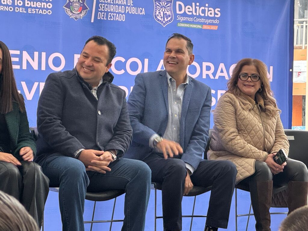 El secretario de Seguridad Pública del Estado, Gilberto Loya Chávez, encabezó la firma de un convenio de colaboración entre la Secretaría de Seguridad Pública del Estado (SSPE) y el Gobierno Municipal de Delicias, con el objetivo de implementar el modelo “En-CLA-VE Siempre Presentes”, enfocado en el fortalecimiento del tejido social desde la prevención temprana del delito.