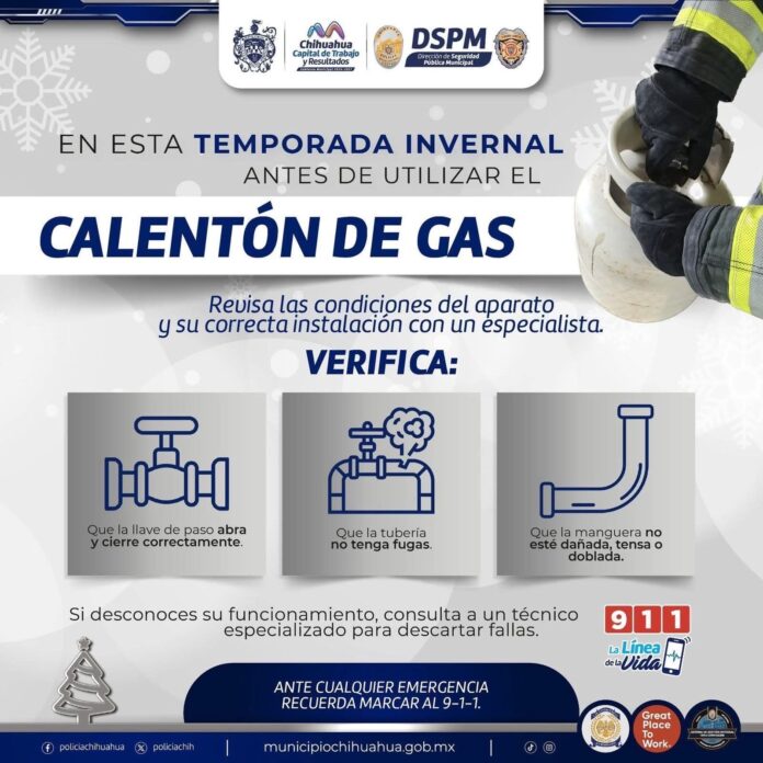 H. Ciudad de Chihuahua, Chih., a 14 de enero de 2026.- Ante el descenso de las temperaturas registrado en la capital, el H. Cuerpo de Bomberos emite recomendaciones al momento de manejar tanques de gas, ya que pueden derivar en fallas principalmente por un llenado inadecuado y falta de revisión preventiva.