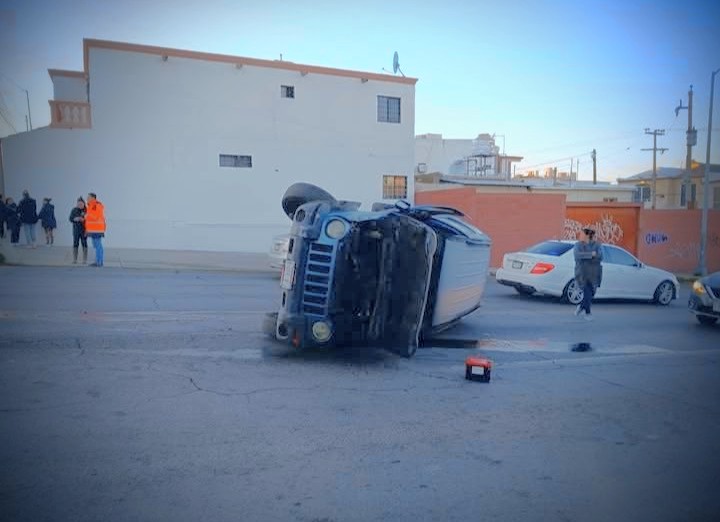 De acuerdo con reportes preliminares, el Toyota se atravesó al paso de la Liberty, provocando el impacto que hizo que la camioneta perdiera el control y volcara en el lugar.