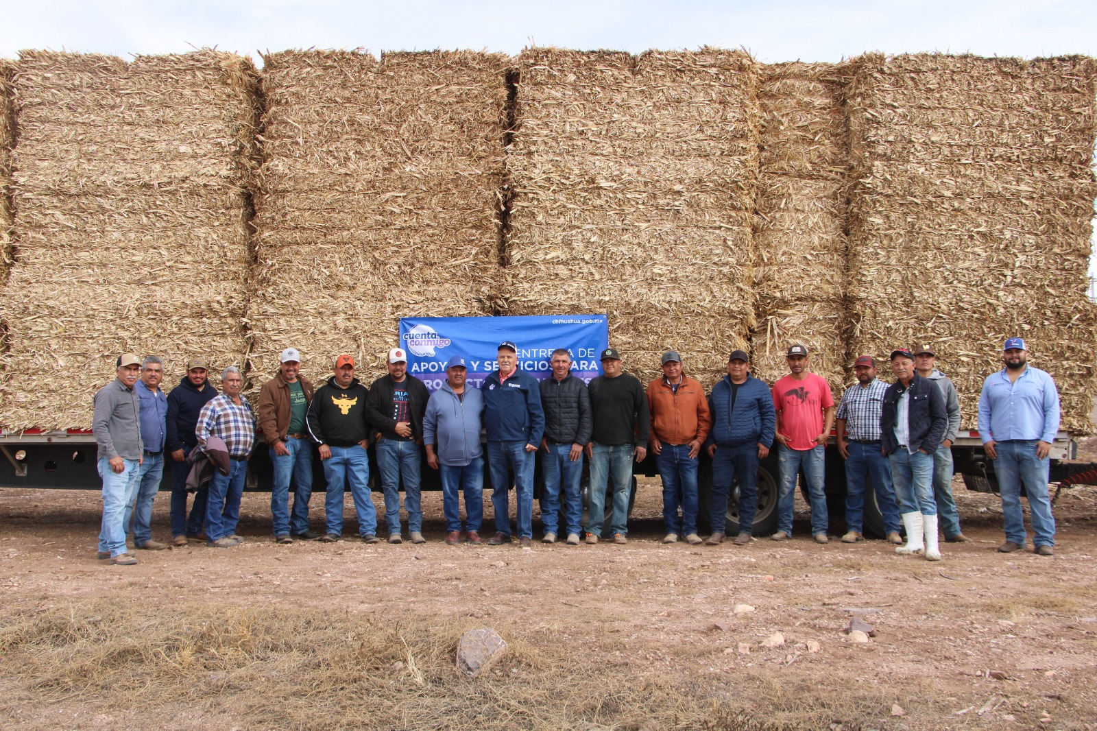 La primera jornada se llevó a cabo en la localidad de Rancho de Enmedio, municipio de Chihuahua, donde fueron otorgadas 200 pacas a integrantes del centro de acopio de leche, Sunilec, en beneficio de los productores que lo abastecen.