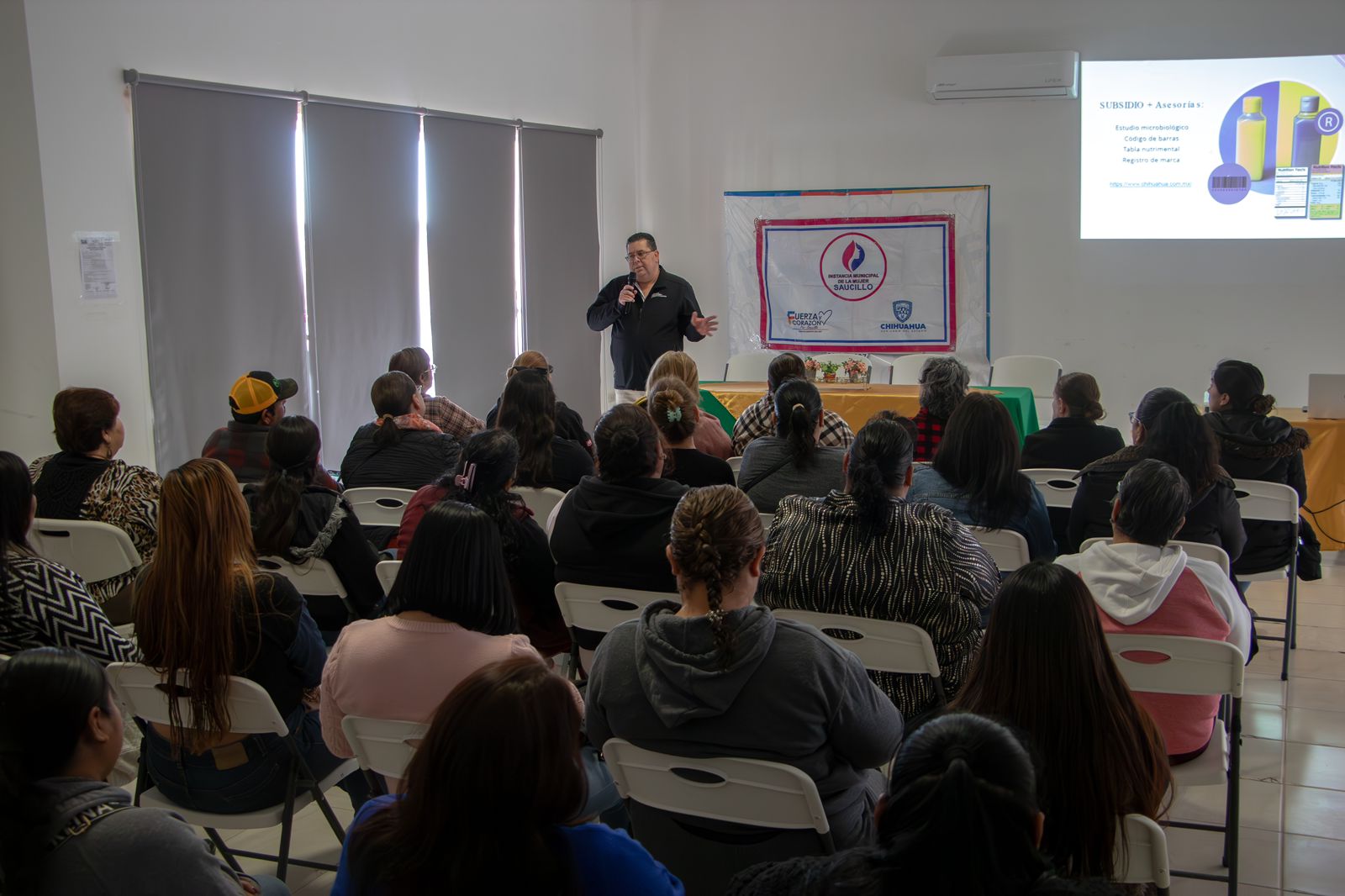 En el presídium se contó con la presencia de Guillermo Quintana, director de Emprendimiento y Desarrollo Económico; Margarita Ponce, directora de Desarrollo Económico; Mireya Salazar, titular de la Instancia Municipal de la Mujer; y Luis Arturo Chavarría, coordinador de Gabinete, en representación del alcalde de Saucillo.