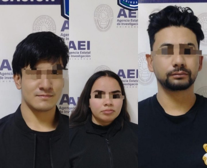 Elementos de la Agencia Estatal de Investigación detuvieron en flagrancia a Ángel R.H., de 28 años; Omar Antonio E.H., de 22; y Reyna Samira R.N., de 23, por presunta posesión de droga en la colonia Riberas del Sacramento, en la ciudad de Chihuahua.