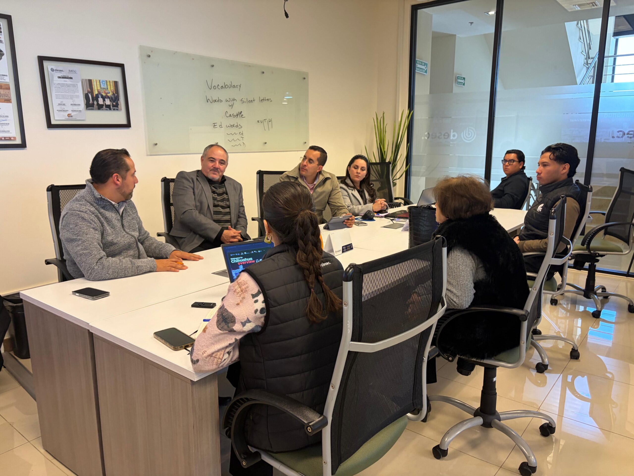 Con el objetivo de dar seguimiento a los trabajos de la Comisión de Planeación de la Instancia de Vinculación y Pertinencia, se llevó a cabo una reunión entre representantes de Desarrollo Económico del Estado de Chihuahua A.C. (DESEC), la Universidad Tecnológica de Paquimé (UT Paquimé) y la Secretaría de Educación y Deporte (SEyD).