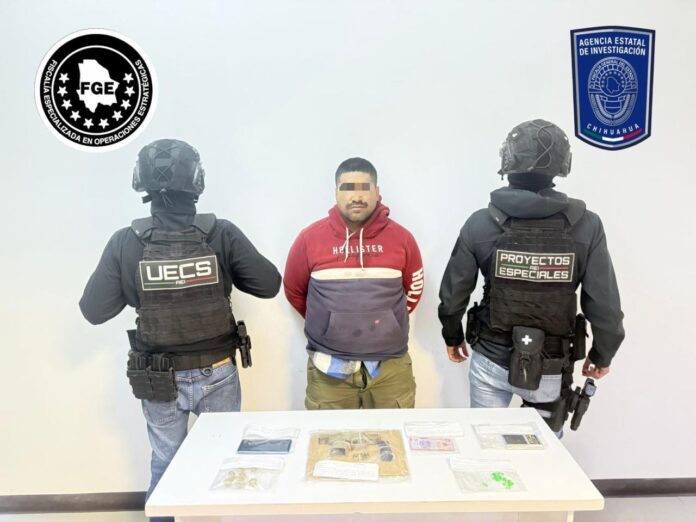 Elementos de la FEOE detuvieron a Óscar Manuel R. D. por delitos contra la salud y violación a la Ley Federal de Armas. La detención ocurrió en Niños Héroes y Camargo, tras circular en sentido contrario en una motocicleta y derrapar al intentar escapar.