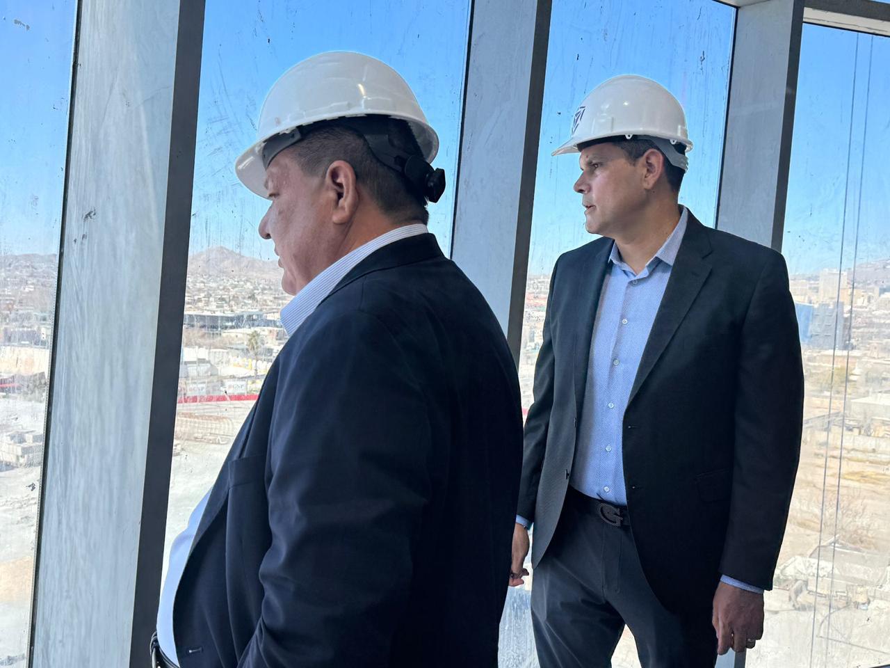 El Secretario de Seguridad Pública, Gilberto Loya, recibió la tarde de este martes la visita del Fiscal General del Estado, César Jáuregui Moreno, en las instalaciones de la Torre Centinela, a fin de conocer los avances en el desarrollo de esta importante obra que conectará la tecnología de vanguardia más importante del país.