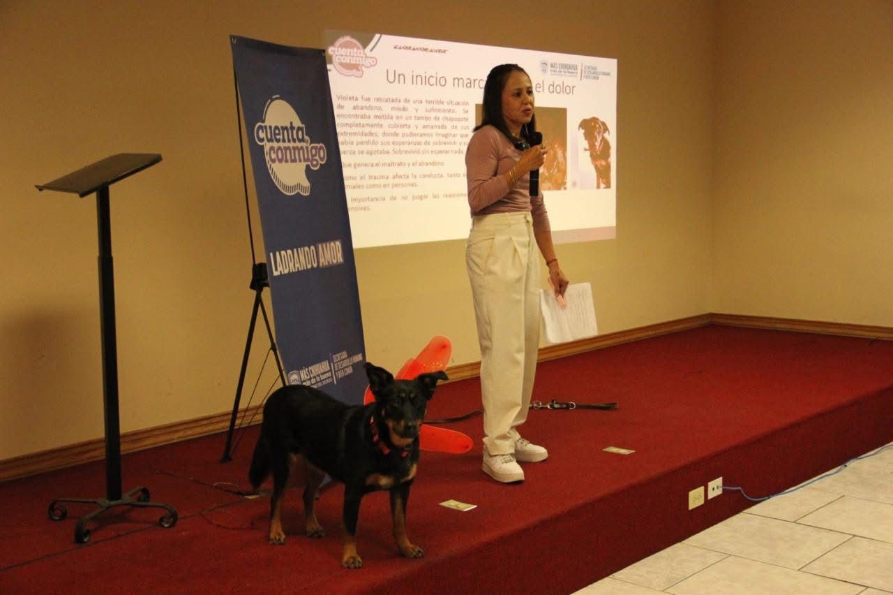 Durante el evento, Violeta acompañó a los alumnos en las pláticas “¿Por qué los perros nos aman?”, “Cuando el amor salva vidas” y “Cuando el amor se vuelve compromiso”, generando un ambiente de profunda empatía que permitió reflexionar sobre la responsabilidad ética hacia los animales y el papel de la comunidad en la construcción de una cultura de paz.