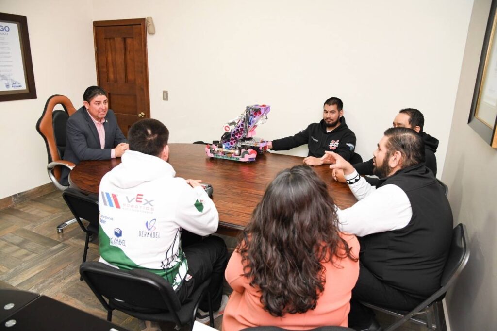 Durante la reunión, el alcalde refrendó su respaldo para que los estudiantes representen con orgullo a Rosales y a México en esta competencia internacional, que se celebrará en San Luis, Missouri, en el mes de abril, y destacó la importancia de impulsar la educación tecnológica como motor de desarrollo y transformación social.