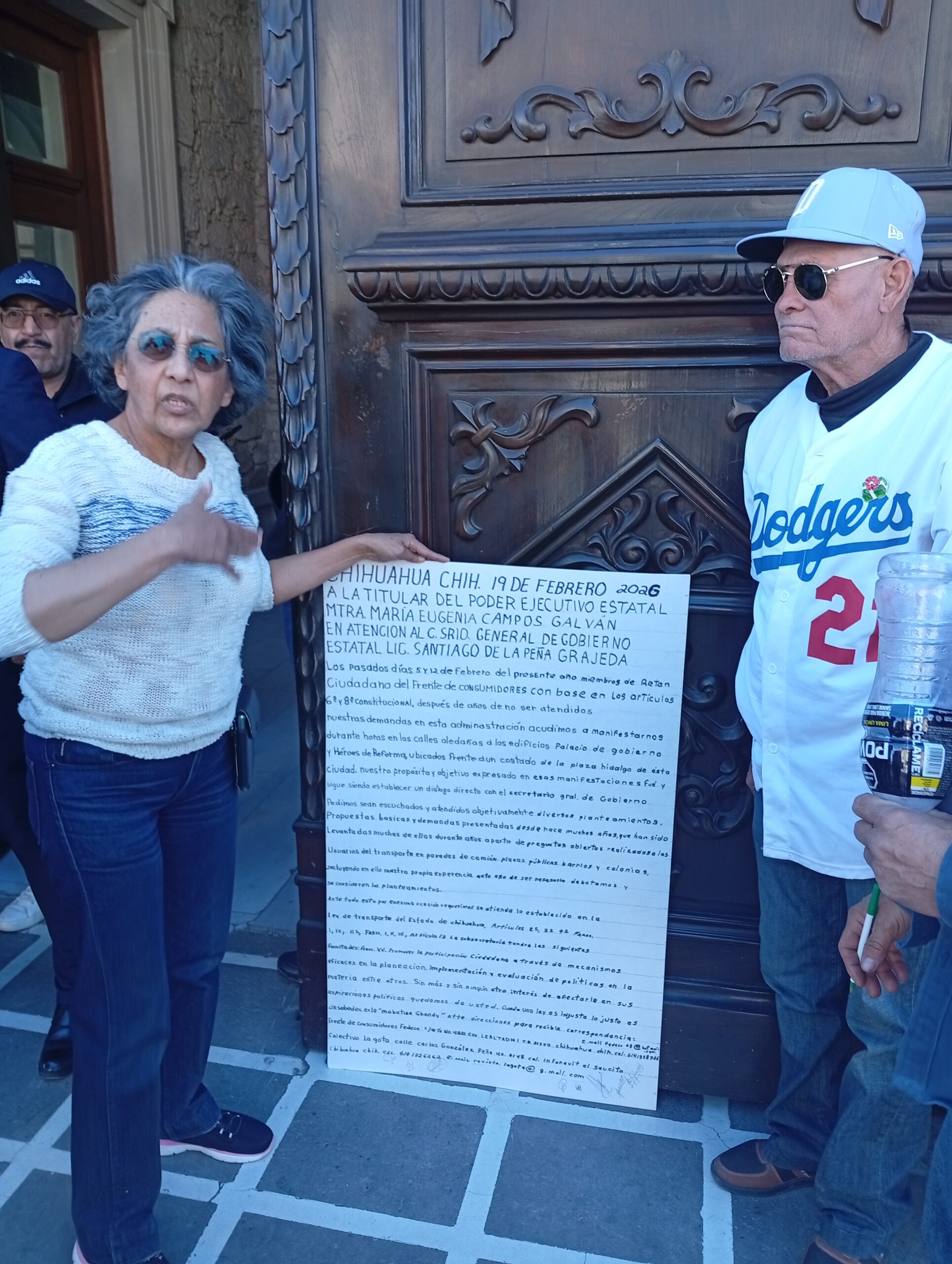 En el documento miembros de Retén Ciudadano del Frente de Consumidores refieren que los días 5 y 12 del presente mes se manifestaron durante varias horas en las calles aledañas a Palacio de Gobierno y el edificio Héroes de Reforma, frente y a un costado de la Plaza Hidalgo, ante la falta —aseguran— de respuesta a planteamientos que han venido realizando desde hace años.