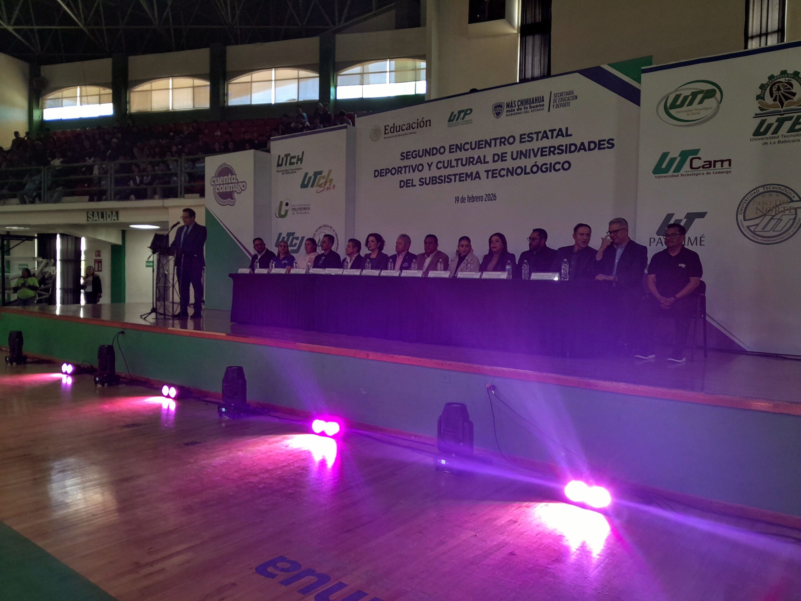 En el gimnasio del Colegio de Bachilleres se inauguró el Segundo Encuentro Estatal Deportivo y Cultural de las Universidades Tecnológicas y Politécnicas (UTyP’s), un evento que reúne a estudiantes de distintas regiones de Chihuahua con el objetivo de promover la sana competencia, el desarrollo artístico y la convivencia entre comunidades académicas.