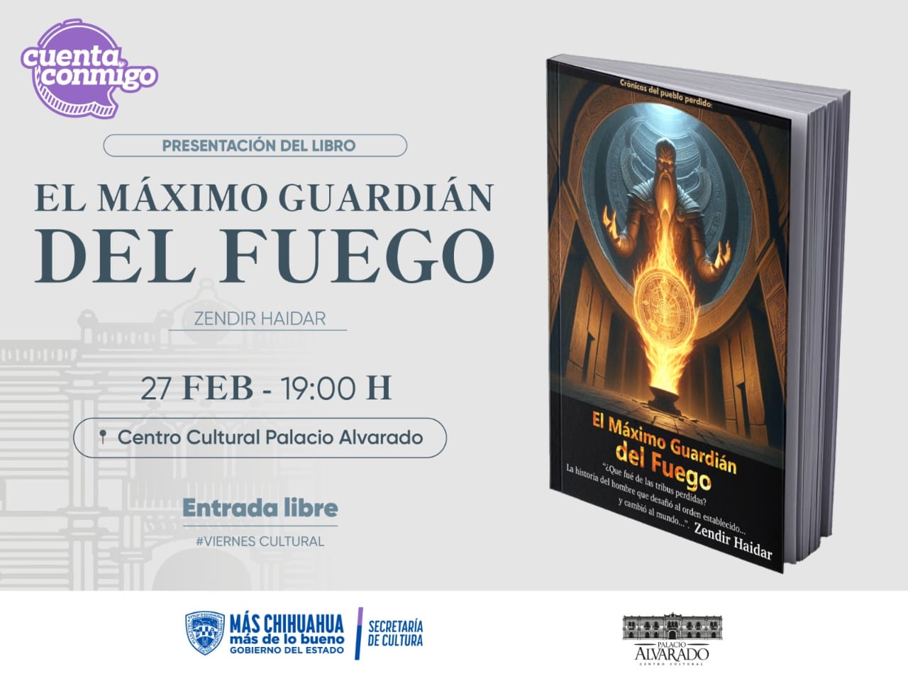 En el marco de los Viernes Culturales del Palacio Alvarado, la Secretaría de Cultura anunció la presentación del libro “El Máximo Guardián del Fuego”, del autor Zendir Haidar, el próximo 27 de febrero a las 19:00 horas.