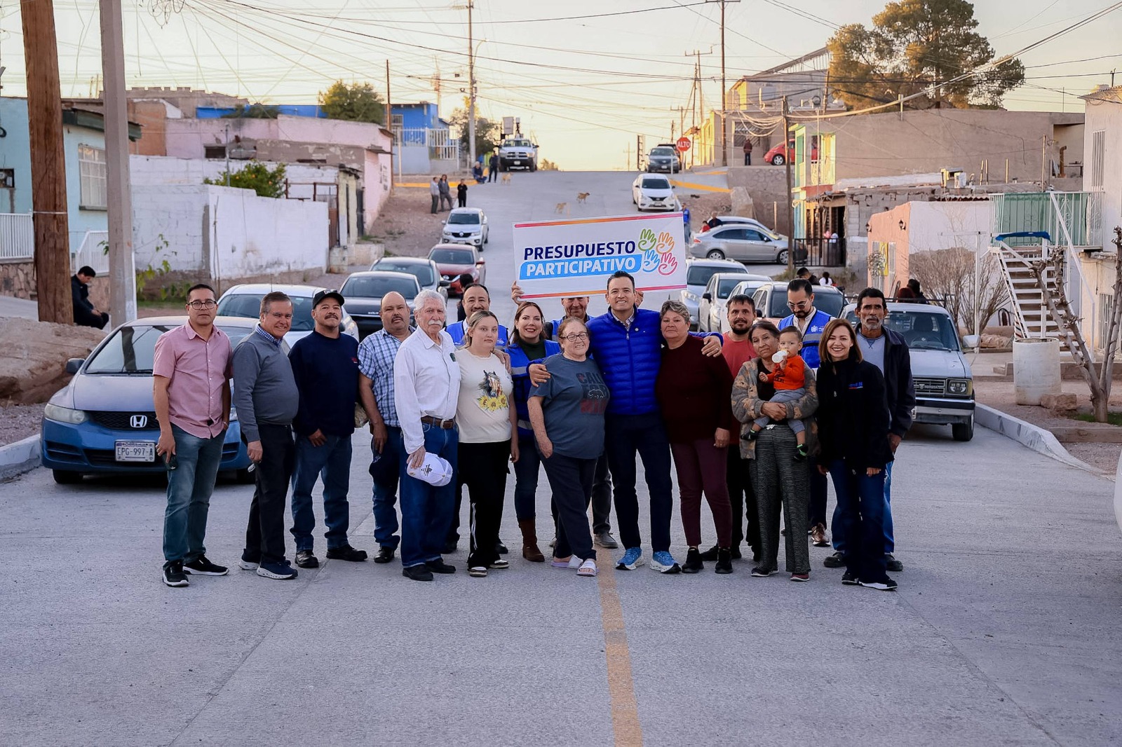 H. Ciudad de Chihuahua, Chih., a 24 de febrero de 2026.- El alcalde Marco Bonilla realizó un recorrido en las calles Rosales y 59A, de la colonia Popular, para entregar a las y los vecinos de esta zona la reciente pavimentación de calle con concreto hidráulico que se tuvo gracias al Presupuesto Participativo.