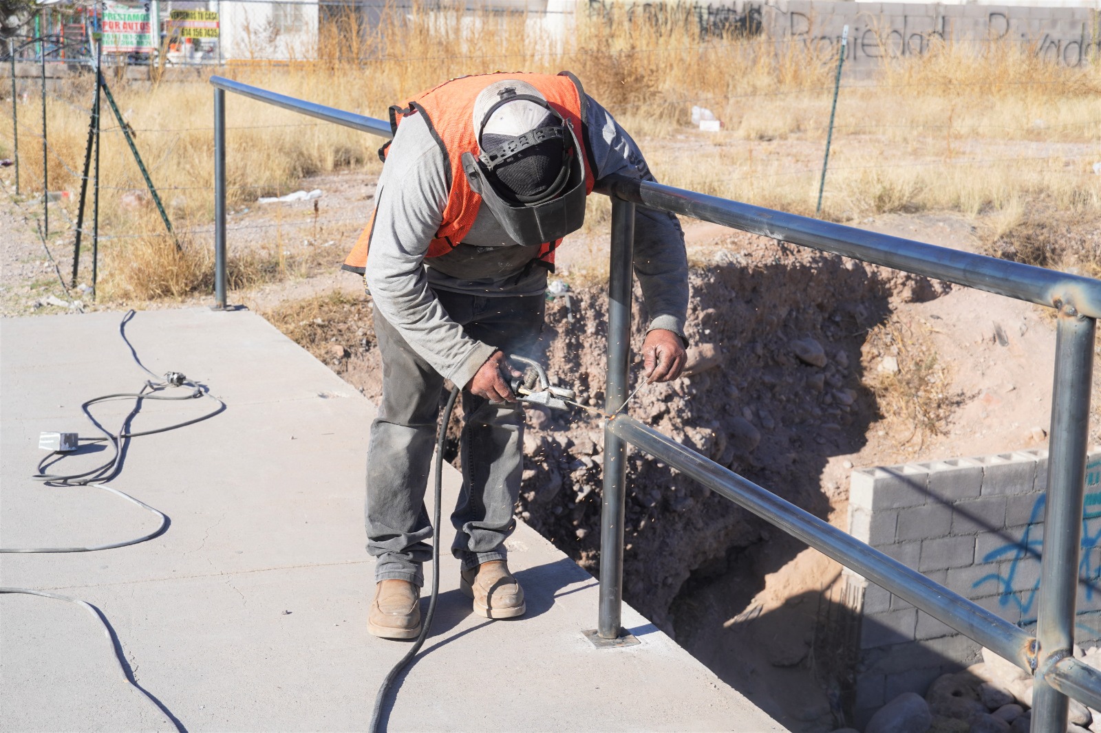 H. Ciudad de Chihuahua, Chih., a 27 de febrero de 2026.- Con el firme compromiso de generar las condiciones necesarias para una movilidad segura para las familias de la colonia Riberas de Sacramento, el Gobierno Municipal, a través de la Dirección de Obras Públicas, trabaja en los últimos detalles de la remediación del puente vehicular y peatonal ubicado en el cruce de la avenida Río Colorado y calle Río Uruguay.