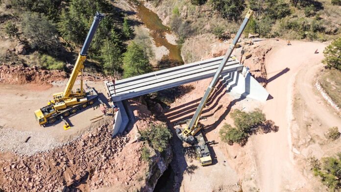 La estructura facilitará el tránsito de los alrededor de 800 vehículos que diariamente cruzan por el arroyo Cuiteco. Personal de la dependencia concluyó recientemente el montaje de seis trabes que conforman la estructura principal del puente.
