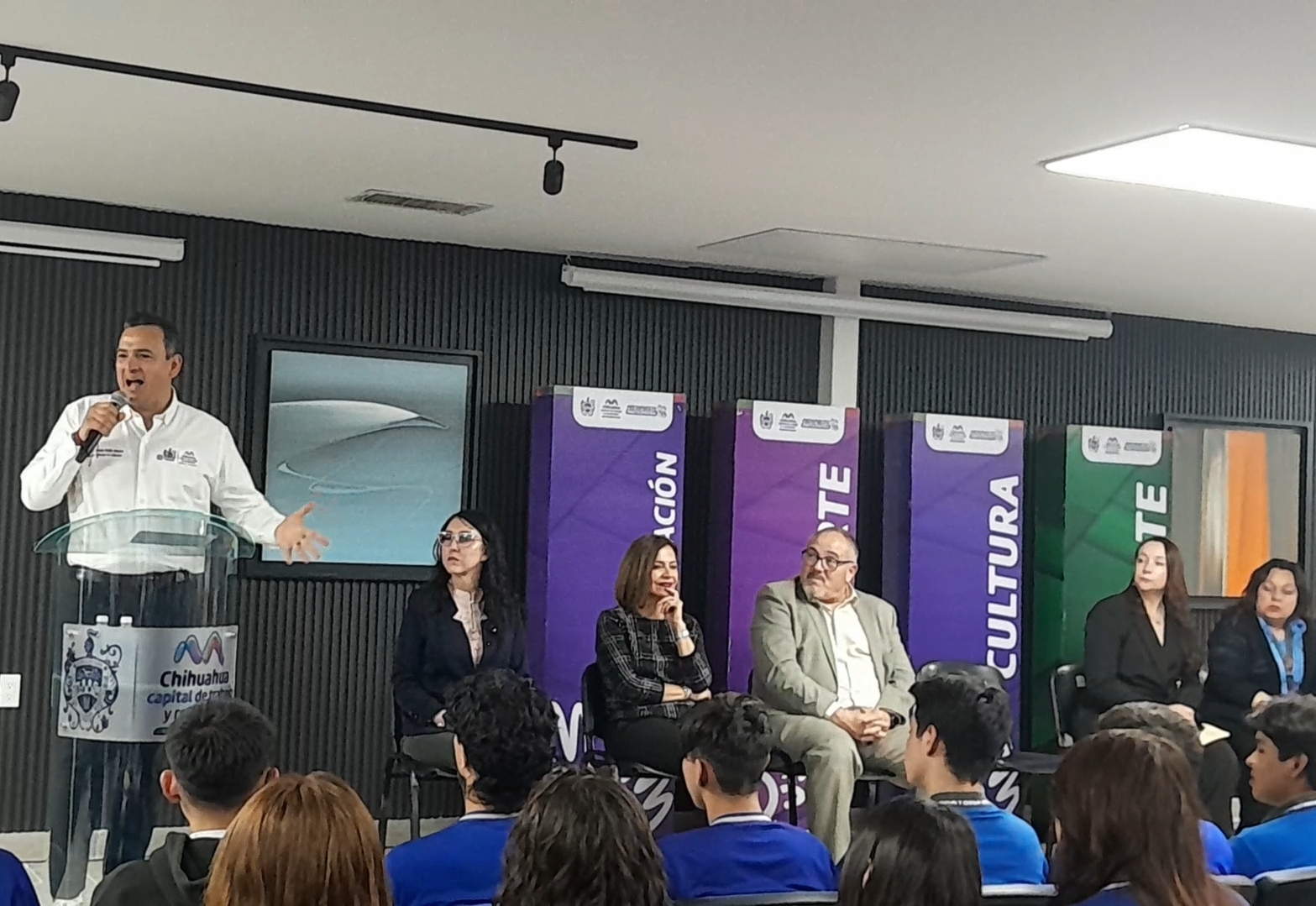 El presidente municipal de Chihuahua entregó la remodelación de un salón audiovisual y la adecuación de un área para atención psicológica en la Preparatoria Maestros Mexicanos Norte, proyecto ganador del Presupuesto Participativo que representó una inversión de 3.2 millones de pesos y beneficia directamente a mil 400 estudiantes.