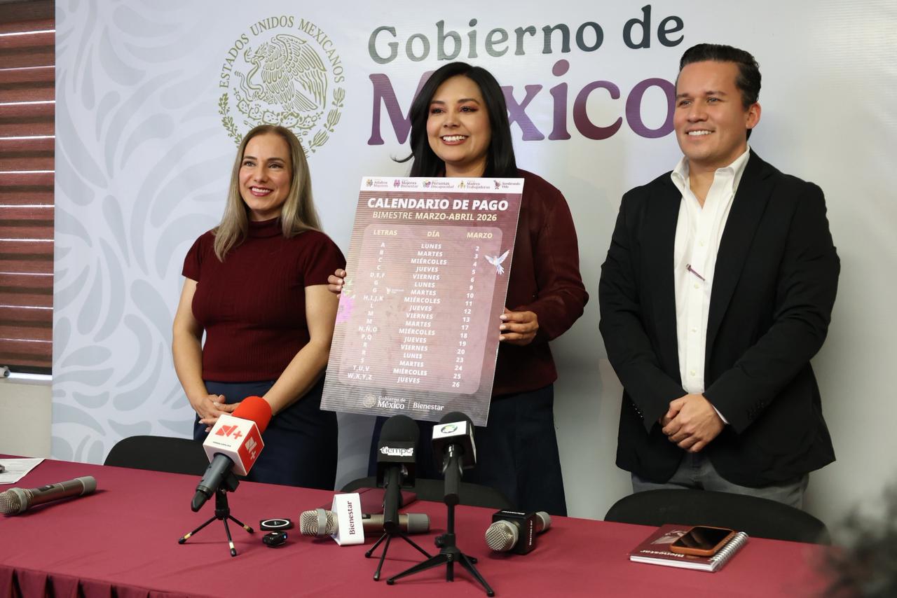 En conferencia de prensa, acompañada por el subdelegado de Desarrollo Social y Humano, Hever Quezada Flores y la subdelegada Administrativa y coordinadora Estatal del Programa Mujeres Bienestar, Rocío Beltrán del Río, la delegada enfatizó que el depósito bancario se realiza de acuerdo con la letra del primer apellido de los derechohabientes y beneficiarios, de acuerdo al calendario de pago, de modo que cada persona puede acceder a su pensión o apoyo a partir del día que le toca, pero que también pueden usar a tarjeta para compras en tiendas de servicio o disponer del recurso en cajeros de otros bancos.